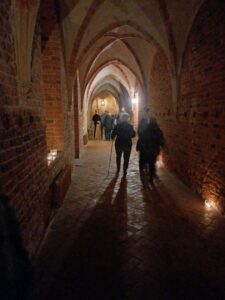 We werden welkom geheten in het klooster door monniken in hun traditionele habijt en liepen door de gangen langs het lichtjesspoor naar de kerkzaal. Toen we het zingen alleen nog maar hoorden liepen de tranen mij al over de wangen; die zaten natuurlijk nog los na deze emotionele week.