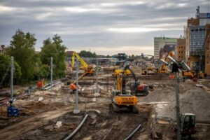 We liepen ook een stukje langs het Ter Apel-kanaal en in de nieuwbouw stond een groepje mensen te spelen op de midwinterhoorn.