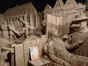 Bij de afbeeldingen hieronder: Midwinterhoorn, een monnik, kerstauto’s én de pony met de slee!