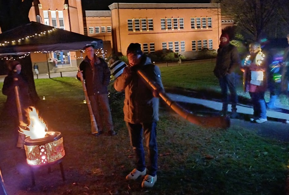 De route was uitgezet met glazen potjes met lichtjes er in en de mensen die aan de route woonden hadden hun tuinen prachtig verlicht; wat een feest om zo in het
