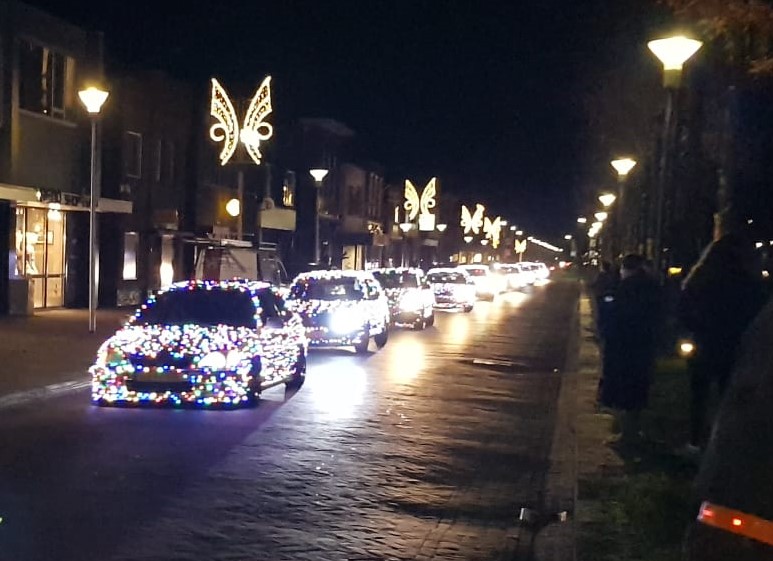 En soms heel apart: toen we langs het kanaal liepen kwam er een stoet toeterende ‘kerst-auto’s’ voorbij!