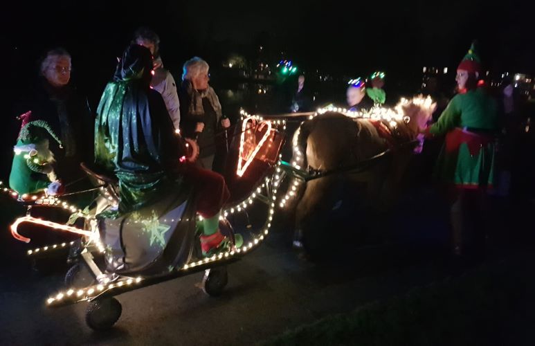 Een beetje bijzonder: er stond een verlichte ezel die een arreslee trok.