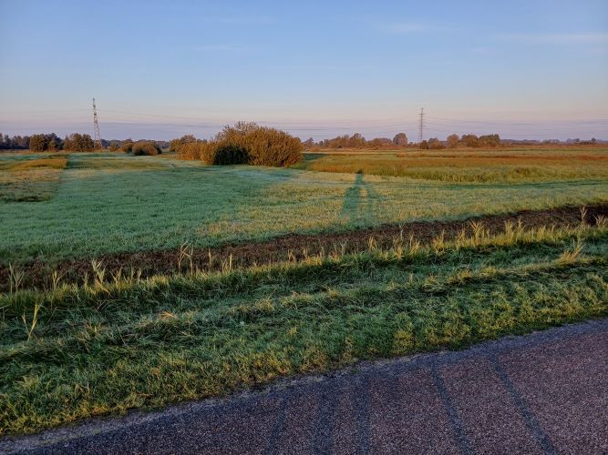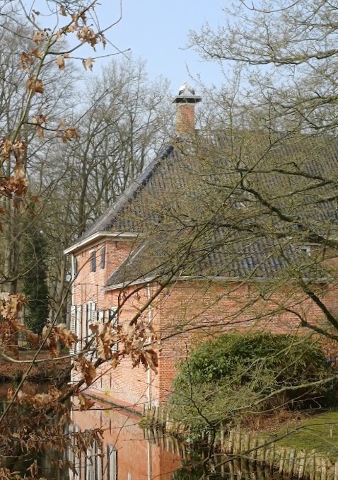 We gingen niet koffiedrinken in De Deel, maar wandelden op de terugweg om de Mensinge heen, waar twee ooievaars bezig waren om hun nest op orde te maken.