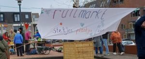 Toen ik kwam waren Wim en Joke nog bezig om een spandoek op te hangen en was de ruilhandel in volle gang.