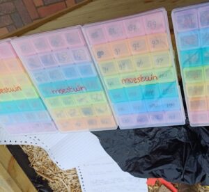 Opeens zag ik een medicijn-verdeeldoosje staan. Tenminste: ik dacht dat het om medicijnen ging, maar het waren zaden!