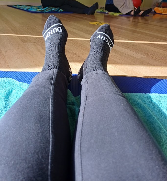 Het laatste stukje van de les is altijd ontspanning; ik zocht een plekje achterin de zaal waar de zon heerlijk naar binnen scheen en liet me ‘wegzakken in het matje’.