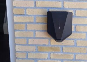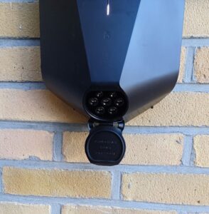 Daarvoor hebben wij nu een oplaadpunt aan ons huis, waar we de stekker van de auto in kunnen drukken.