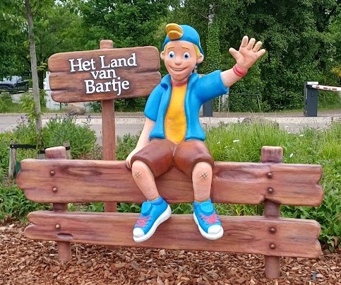Voor de receptie van het park staat een levensgrote Bartje; het ventje heeft een pet op en gympen aan en hij lijkt wat mij betreft in niets op ons Drentse icoon.