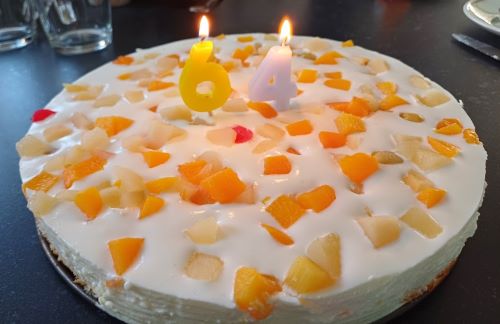Gisteravond zaten we met broers en zussen te genieten van de taart op de afbeelding hiernaast en daarna van een aanrecht vol lekkere hapjes die Gerard en ik hadden voorbereid.