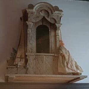 Daar was iets wat ik nog nooit had gezien: een klein altaartje met een klein priester-popje, daarmee konden de katholieke kindertjes thuis kerkje spelen…!