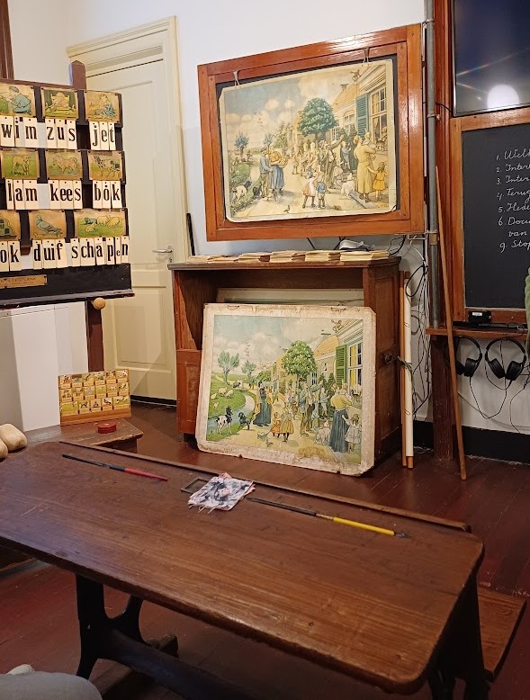 In het klaslokaal van het Scheepstrakabinet zat ik in de smalle schoolbankjes samen met Catharina-vrijwilliger Theo heel braaf te zijn.
