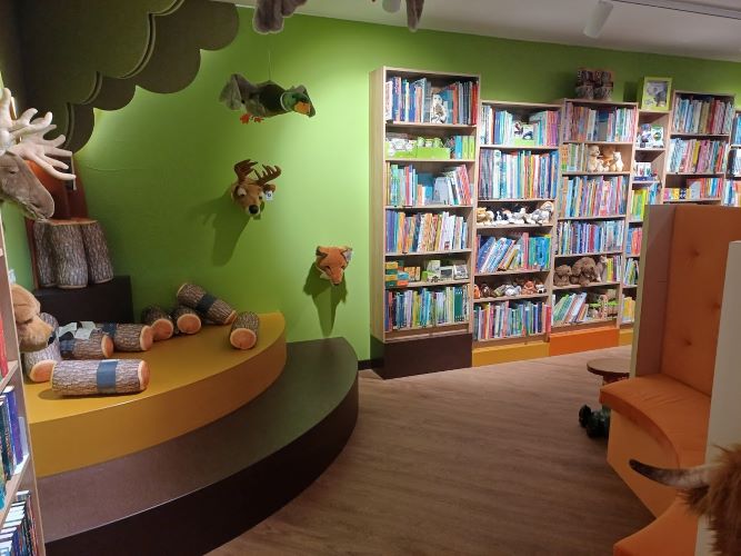 En met een mooie, ruime kinderboekenafdeling mét een voorlees hoek!