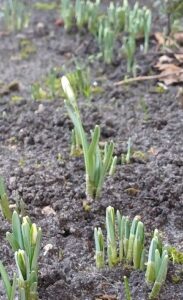 Toen we weer bij huis waren bewonderden we samen het eerste sneeuwklokje in de tuin.