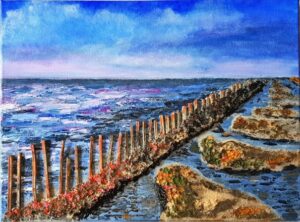 Alie had een krantenknipsel mee, want één van onze leden, Marijke Hartman-Pilon, die schildert bij de Teken- en Schildergroep Roden exposeert van januari tm april in de Doopsgezinde Kerk in Roden.