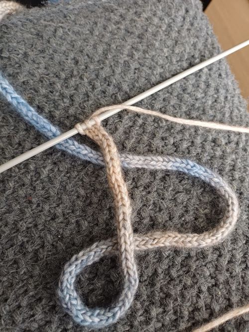 Het tweede was het breien van een koordje dat door de boord van de muts moet worden gehaald.