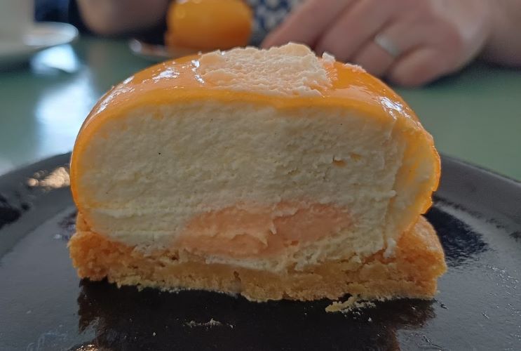 De vraag stellen is haar beantwoorden, dus even laten stonden we likkebaardend voor een vitrine met gebak: chocoladetaart, appelgebak of een soort soes.