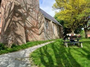 Vervolgens liepen we met de hele groep naar de overkapping bij Joy, (klik op de afbeelding voor een vergroting) waar we nog eens de carols ten gehore brachten en om 15.00 uur begon in de Catharinakerk de kerstsamenzang ‘Met mekaar zingen’.
