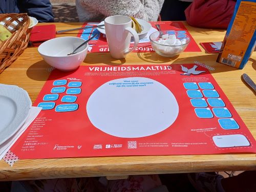 Iemand van de organisatie kwam bij ons tafeltje staan.