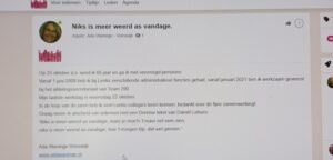 – Ik had mijn gitaar mee en begon met het zingen van het lied ‘Tik tak, daor giet de tied’ van Daniel Lohues. Over ‘het opschuiven in de tijd’ hadden we de laatste tijd best vaak gesprekken op het secretariaat.